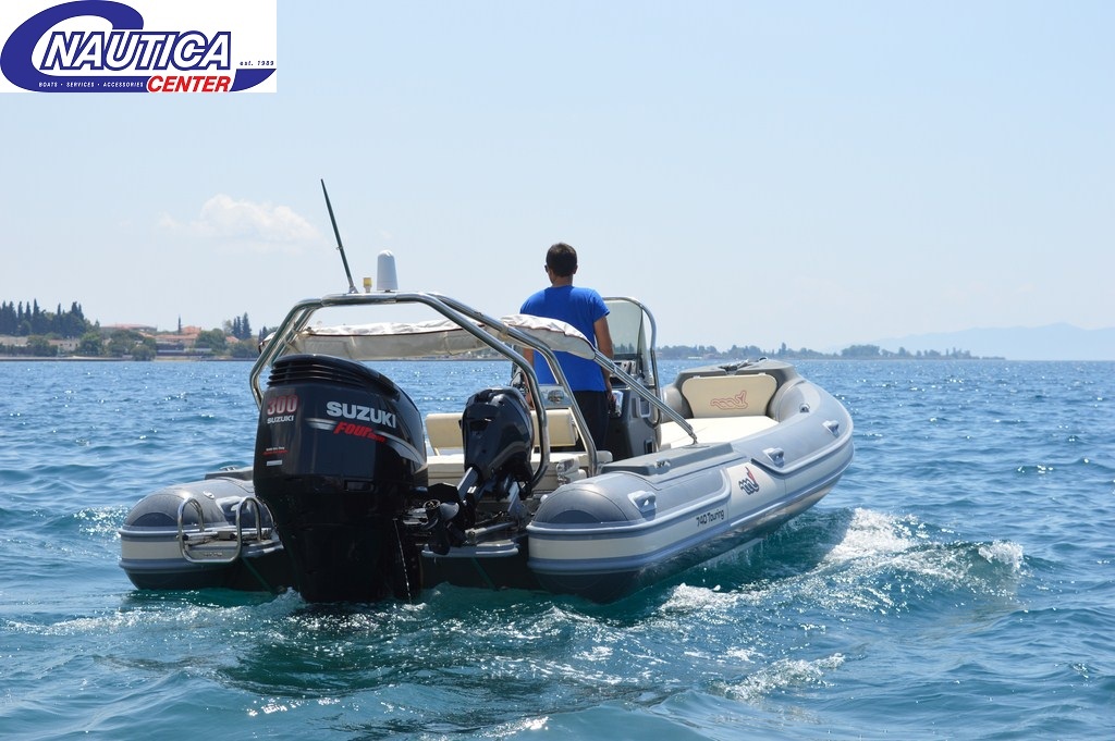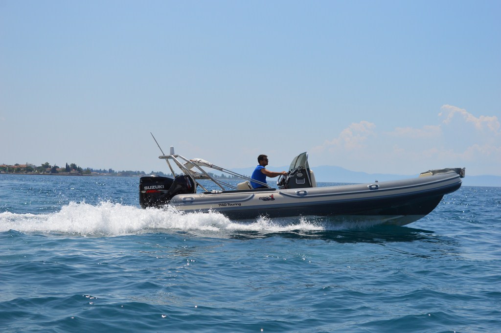 Αν είστε κάτοχος διπλώματος ταχύπλοου σκάφους μπορείτε και μόνοι σας να οργανώσετε το ταξίδι σας επιλέγοντας τους δικού σας προορισμούς και λιμάνια.Η περιοχή μας διαθέτει 6 λιμάνια για ασφαλή διανυκτέρευση και με δυνατότητα τροφοδοσίας νερού, καυσίμων και γενικών προμηθειών.Ένα ακόμη προνόμιο είναι η δυνατότητα επιλογής του σκάφους με skipper ή χωρίς.Πανέμορφες παραλίες με καταγάλανα νερά και αμέτρητα νησάκια σας περιμένουν.Ότι και αν ονειρεύεστε για της διακοπές σας εδώ σίγουρα θα το ζήσετε. "Σκάφος φουσκωτό για 10 άτομα παντός καιρού για να μην σας χαλάσει τίποτα την βόλτα σας." Άτομα: 10 Μηχανή: SUZUKI 300 4-STROKE Χαρακτηριστικά: ΦΟΥΣΚΩΤΟ 7,40 ΜΕΤΡΑ ΜΕ SUZUKI 300 4STROKE KAI ΒΟΗΘΗΤΙΚΗ SUZUKI F8,ΜΑΞΙΛΑΡΙΑ,ΤΕΝΤΑ,ΝΤΟΥΖ,GPS Δεξαμενή νερού: 45 ΛΙΤΡΑ Δεξαμενη καυσίμου: 250 ΛΙΤΡΑ